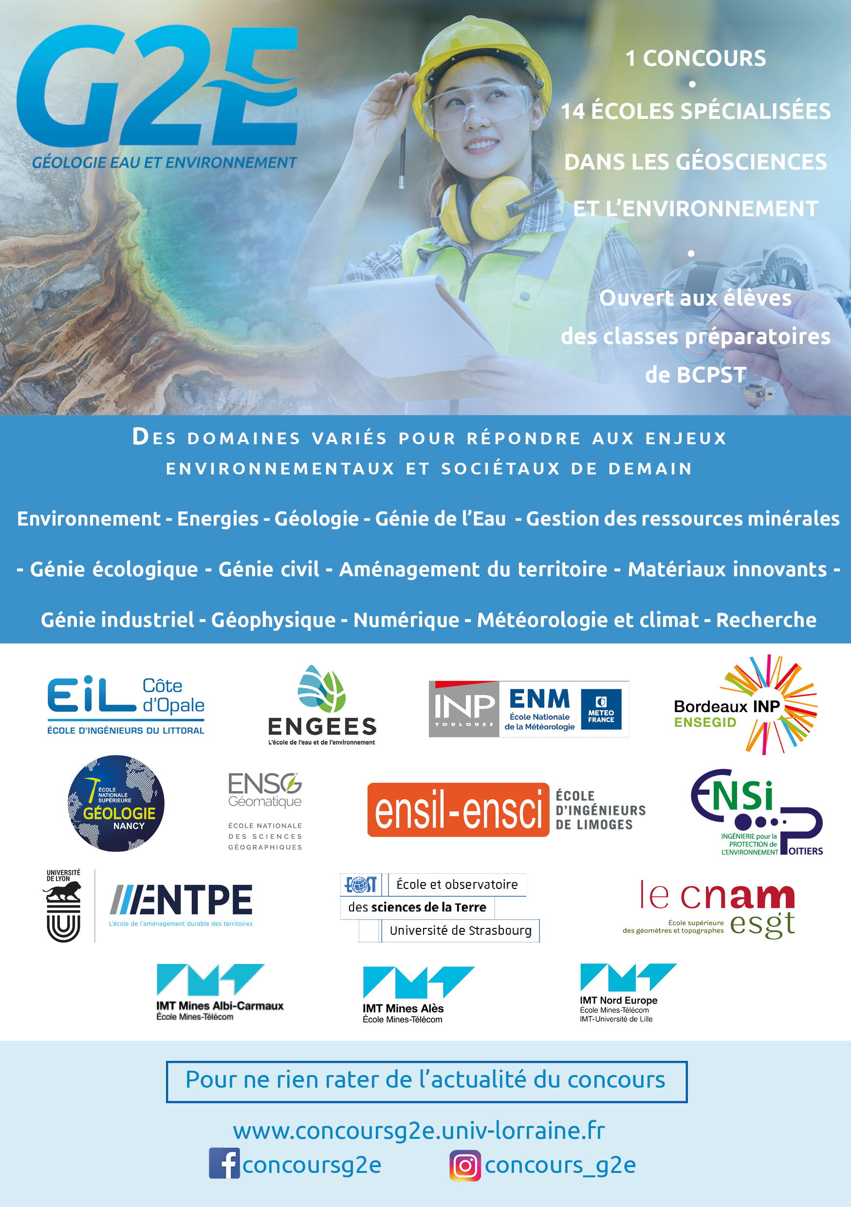 La plaquette de présentation du concours G2E : 14 écoles de géosciences et de l'environnement