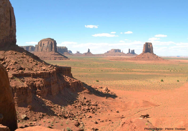 Les couches sédimentaires ont été entaillées par un processus d’érosion de grande ampleur : seules quelques buttes témoins sont encore en place.